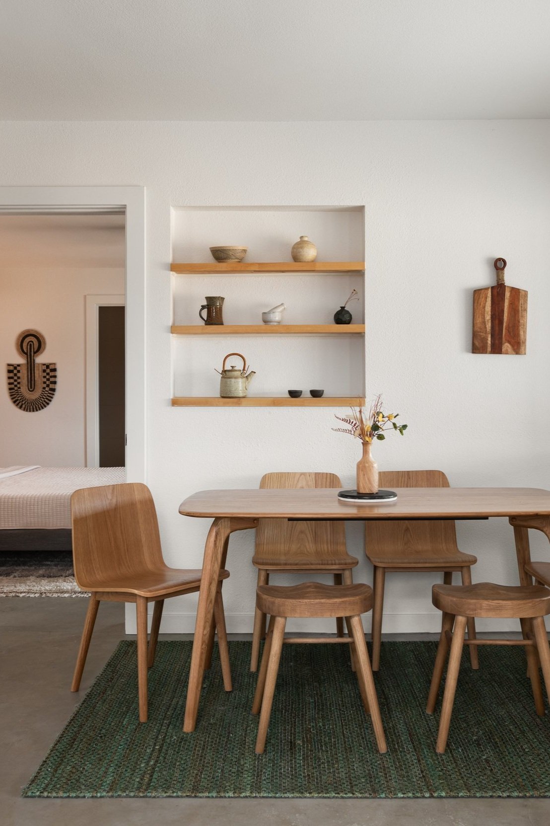 Harmony Tea House is a short-term vacation rental located in Southern California near Joshua Tree, CA. Throughout the space, we carefully curated artwork, ceramics, and decorative pieces that pay homage to Japanese culture and aesthetics as well as its high-desert surroundings. The color palette is a subtle symphony of muted hues inspired by nature – soft greens, warm browns echoing the earth, and delicate neutrals. The space invites you to escape the hustle and bustle of the outside world and find solace in the art of simplicity.